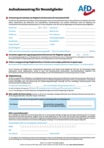 Im Folgenden finden Sie die Antragsformulare für die Mitgliedschaft / Fördermitgliedschaft im AfD-Kreisverband Göttingen im PDF-Format: